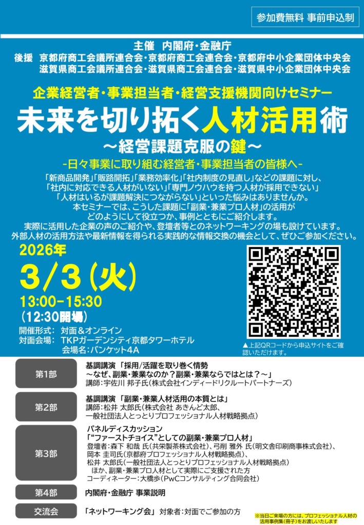 【企業経営者・事業担当者・経営支援機関向けセミナーに登壇します!(京都開催)】
